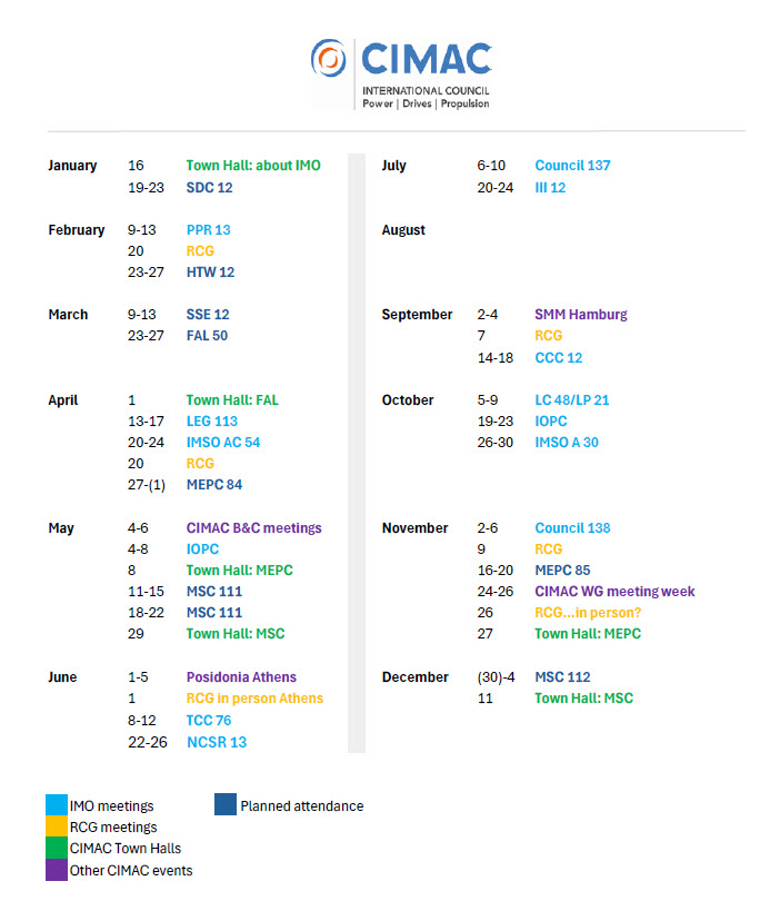 CIMAC Town Hall sessions will continue in 2026, building on the successful discussions held in 2025. These sessions remain an important platform for dialogue. Please find the exact dates, along with other key dates such as IMO meetings, in this document or below.